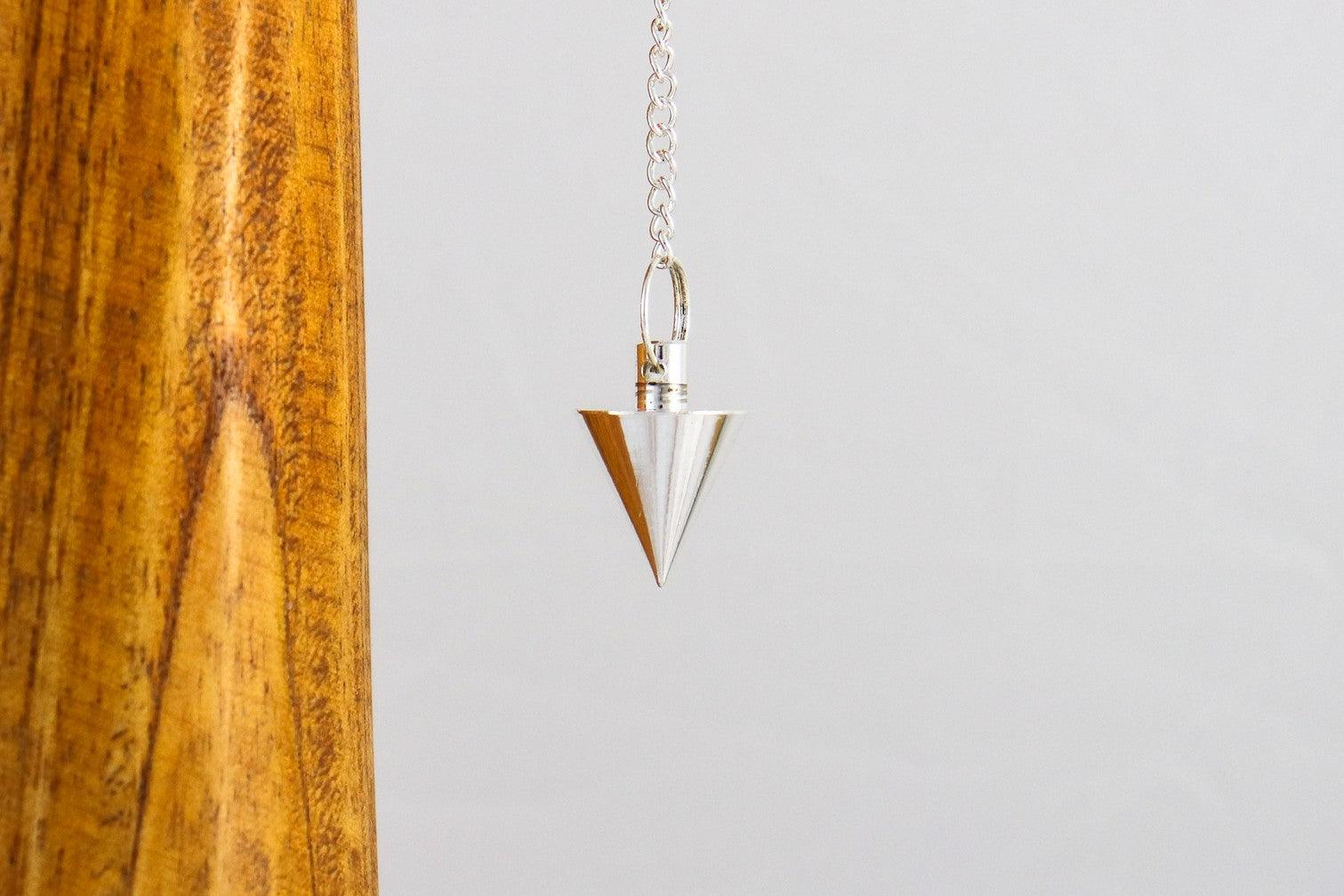 Solstice & Minéraux vous propose un pendule en métal argenté, en forme de petit cône. Le pendule divinatoire cône est simple d'utilisation, adapté à tous et il est en métal, ce qui signifie que c'est un pendule émetteur et récepteur.